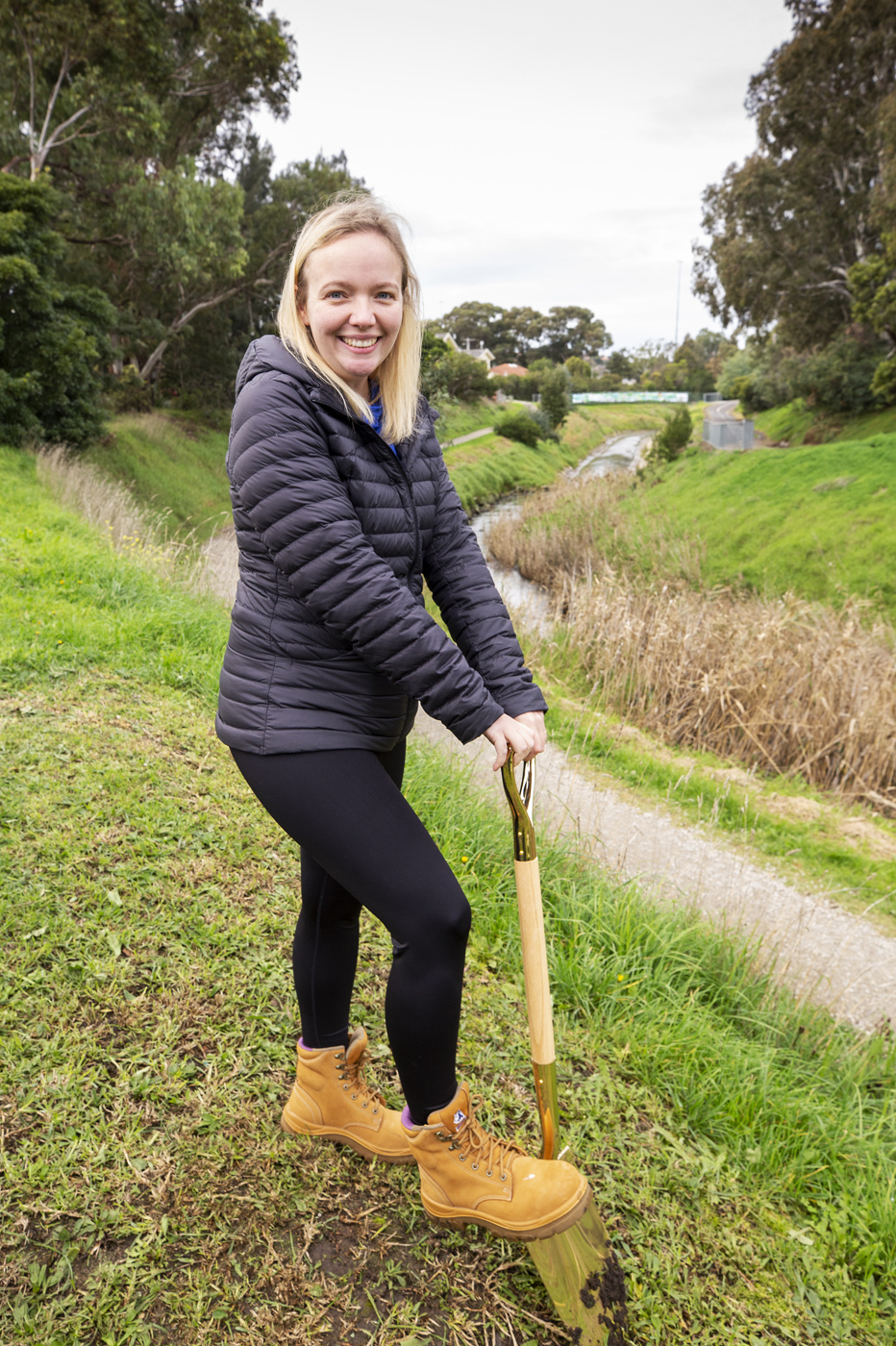 Member for Essendon Danny Pearson MP (representing Minister for Water Lisa Neville MP) officially began the works when turning the first sod of the project, which will include channel naturalisation, pathway and revegetation works that will be completed in mid-2023.
