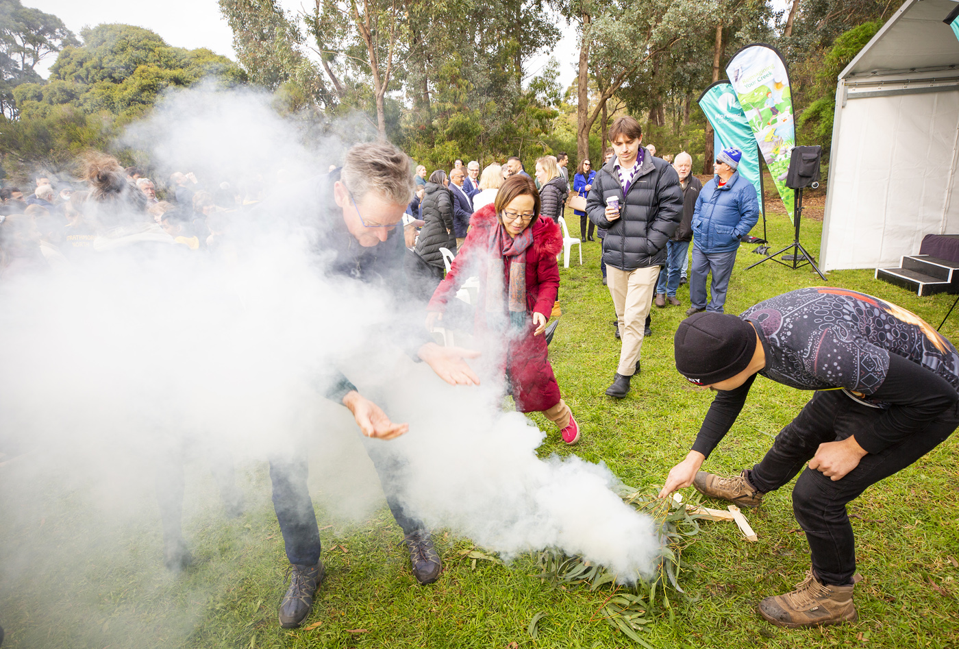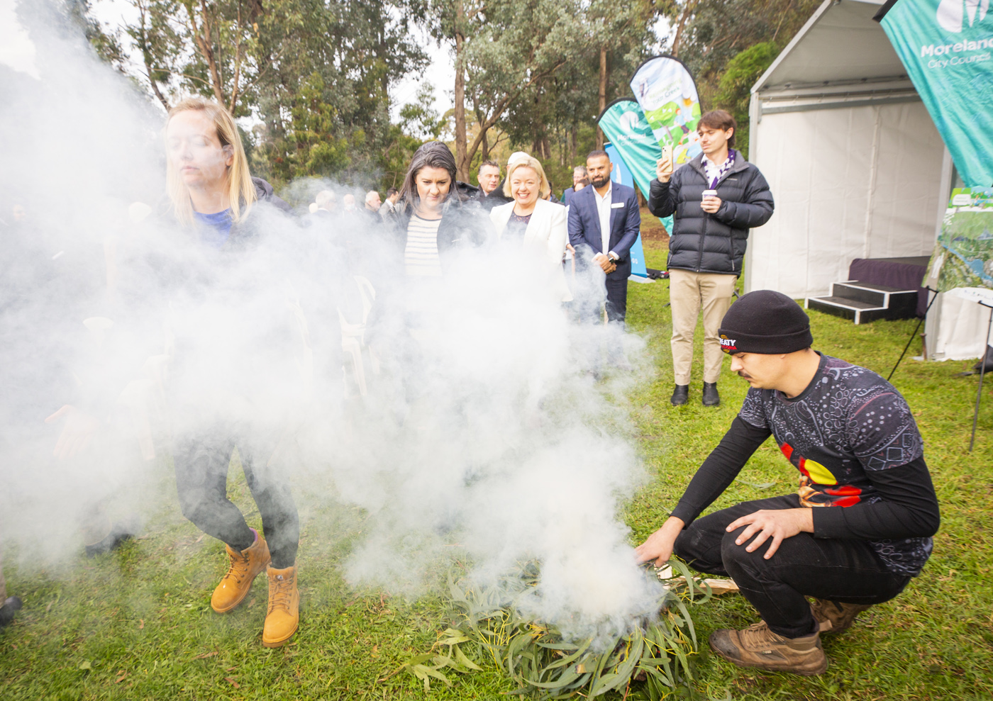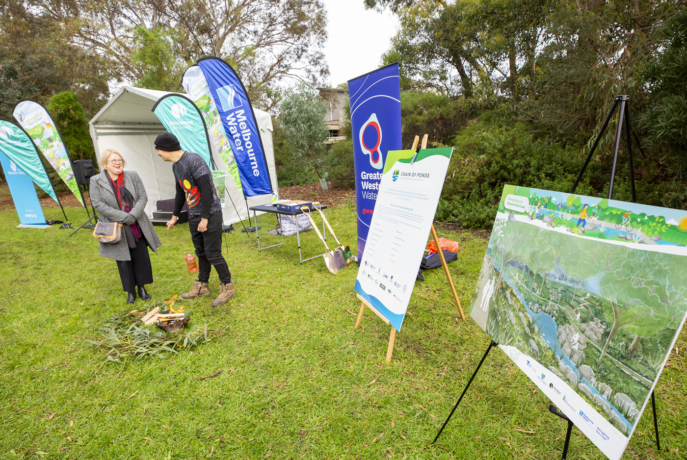 Deputy Mayor of Moonee Valley Cr Samantha Byrne joined Moonee Valley City Council CEO Helen Sui, state and federal members for parliament and representatives from the Chain of Ponds Collaboration Group at an event to celebrate the start of construction. The morning began with a formal Welcome to Country and Traditional Smoking Ceremony. Conducted by an emerging Wurundjeri Woi-wurrung elder, the ceremony acknowledged the significance of the environment and waterways to reconciliation.